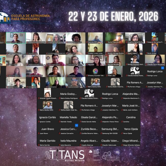 Con cerca de mil profesionales capacitados a lo largo de más de una década de actividades, la Escuela de Astronomía para Profesores vuelve con su duodécima edición este 22 y 23 de enero 2026, la que se realiza finalmente en modalidad online debido a la contingencia provocada por los incendios forestales que afectan al país, resguardando la seguridad de las y los participantes y asegurando la continuidad de esta instancia formativa. La convocatoria reúne a docentes de distintas regiones de Chile y de otros países, ampliando su impacto formativo a nivel nacional e internacional.