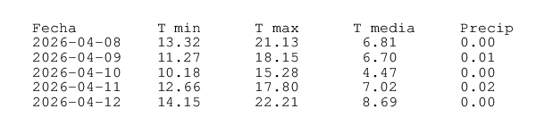 Meteograma y pronóstico para los próximos 5 días