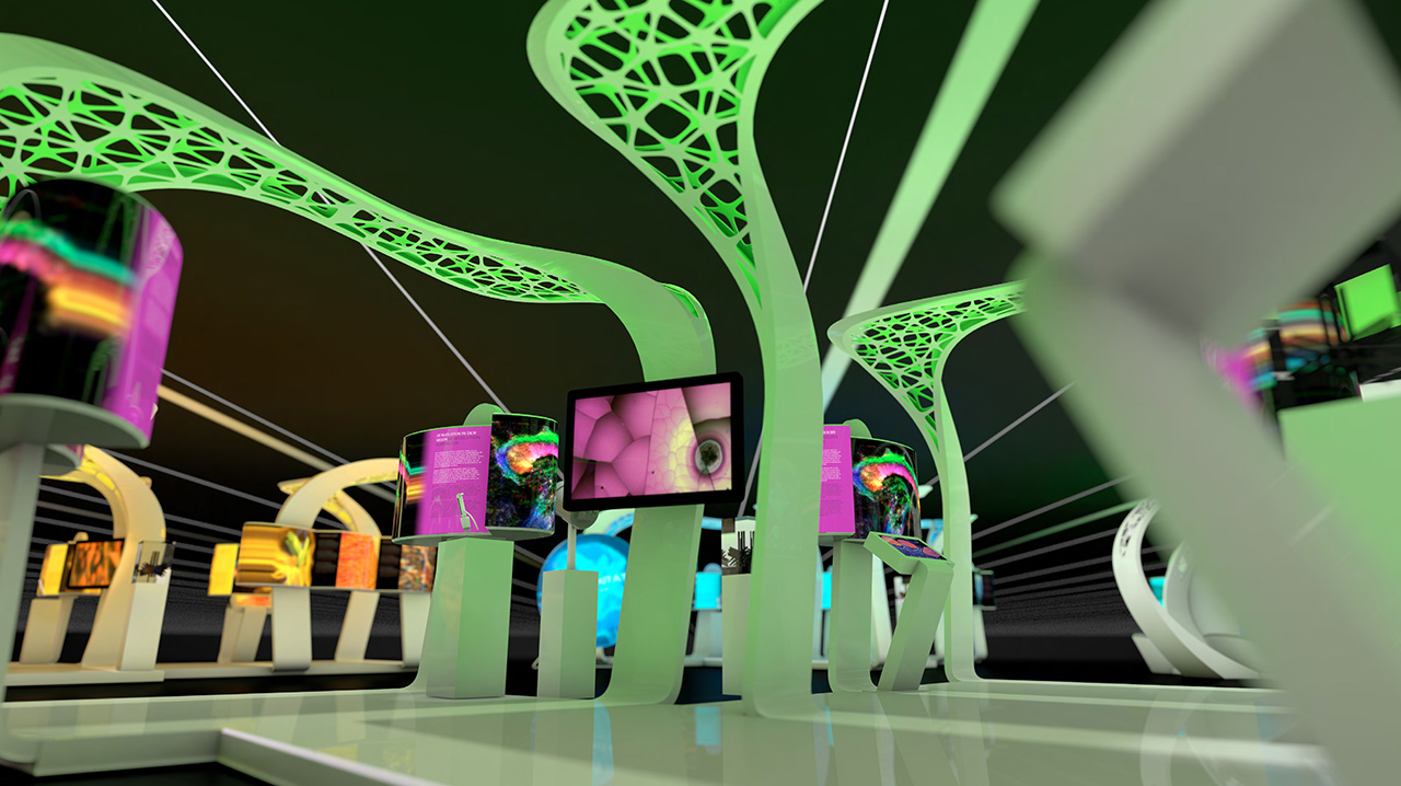 The exhibition consists of eight modules distributed over a 1200 squared meter space covering the following topics: